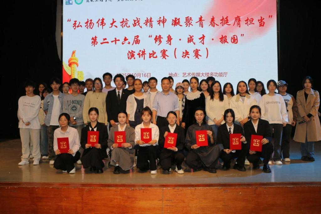 为引导青年学子厚植家国情怀、涵养进取品格,10 月 16 日,学院在多功能厅举办第二十六届“修身・成才・报国”演讲比赛决赛。学院党委书记李玉印、正处级组织员杨红与学工办专职辅导员共同组成评委团,全院百余名学生到场观赛。