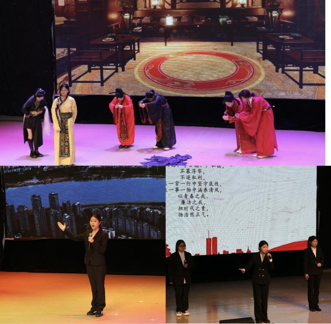 经过前期初赛严格选拔,共有9组优秀作品脱颖而出晋级决赛。参赛选手们以诵读为载体、以清廉为内核,或回望先贤风骨、明志守心,或立足校园日常、践行初心,或跨越时空对话、传承廉脉,用青春视角生动诠释廉洁内涵,以真挚情感传递浩然正气,为现场师生呈现了一场兼具思想深度、艺术质感与青春温度的廉洁文化思政课。